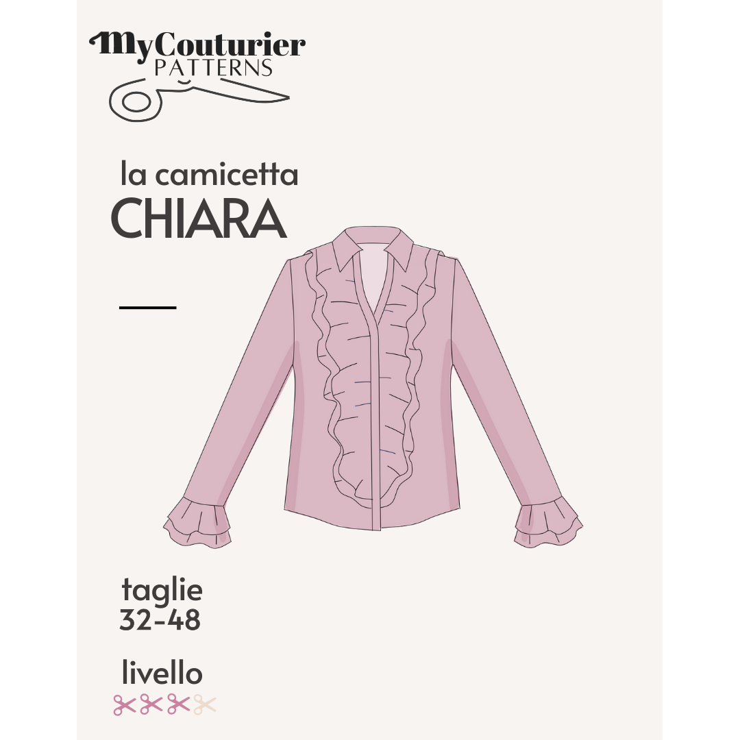 - Il foglio del cartamodello dalla taglia 32 alla 48; pagine da stampare in formato A4 e da assemblare facilmente senza ulteriori ritagli;